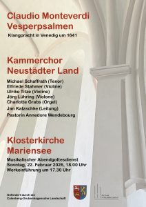 Der Kammerchor Neustädter Land vereint stimmbegabte Chorsängerinnen und Chorsänger unter der Leitung des Kirchenmusikers Jan Katzschke. Gemeinsam mit renommierten Solisten und Instrumentalisten kommen a-capella-Werke, Kantaten und Oratorien auf hohem künstlerischem Niveau zur Aufführung. Die Kernbesetzung, in der regelmäßig geprobt wird, beschränkt sich auf 20 Mitglieder; je nach den Erfordernissen der jeweiligen Musik wird sie allerdings projektweise vergrößert oder verkleinert. Höhepunkte der jüngeren Zeit waren u.a. mehrere Bach-Kantaten-Abende sowie Aufführungen von J.S. Bachs Johannespassion im April 2022 in Mariensee und von Heinrich Schützens „Musicalischen Exequien“ im November 2022 in Helstorf.